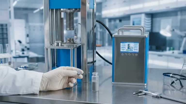 Dans un cadre industriel, la presse est un gardien. Les techniciens prélèvent des échantillons de grands lots de poudre d'électrodes et les pressent pour vérifier que le matériau répond aux normes de densité et mécaniques requises. Cette simple vérification évite des erreurs coûteuses avant qu'un lot ne soit engagé dans la chaîne de production complète.